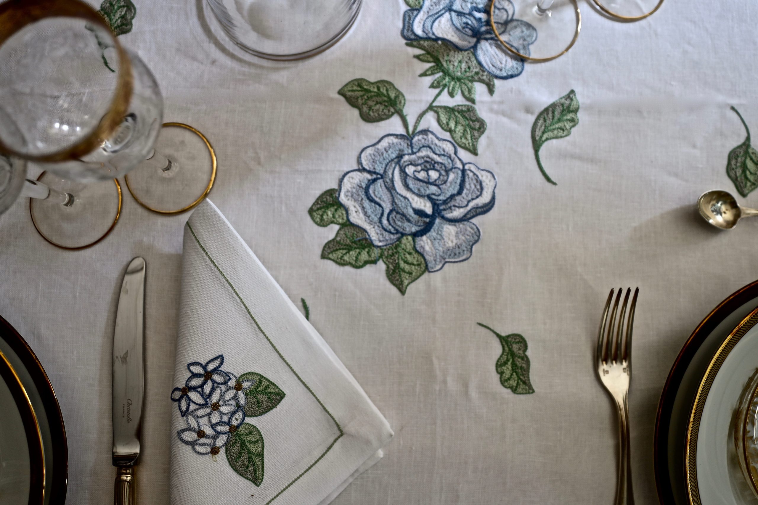 Tovaglioli con fiore ricamato in angolo.